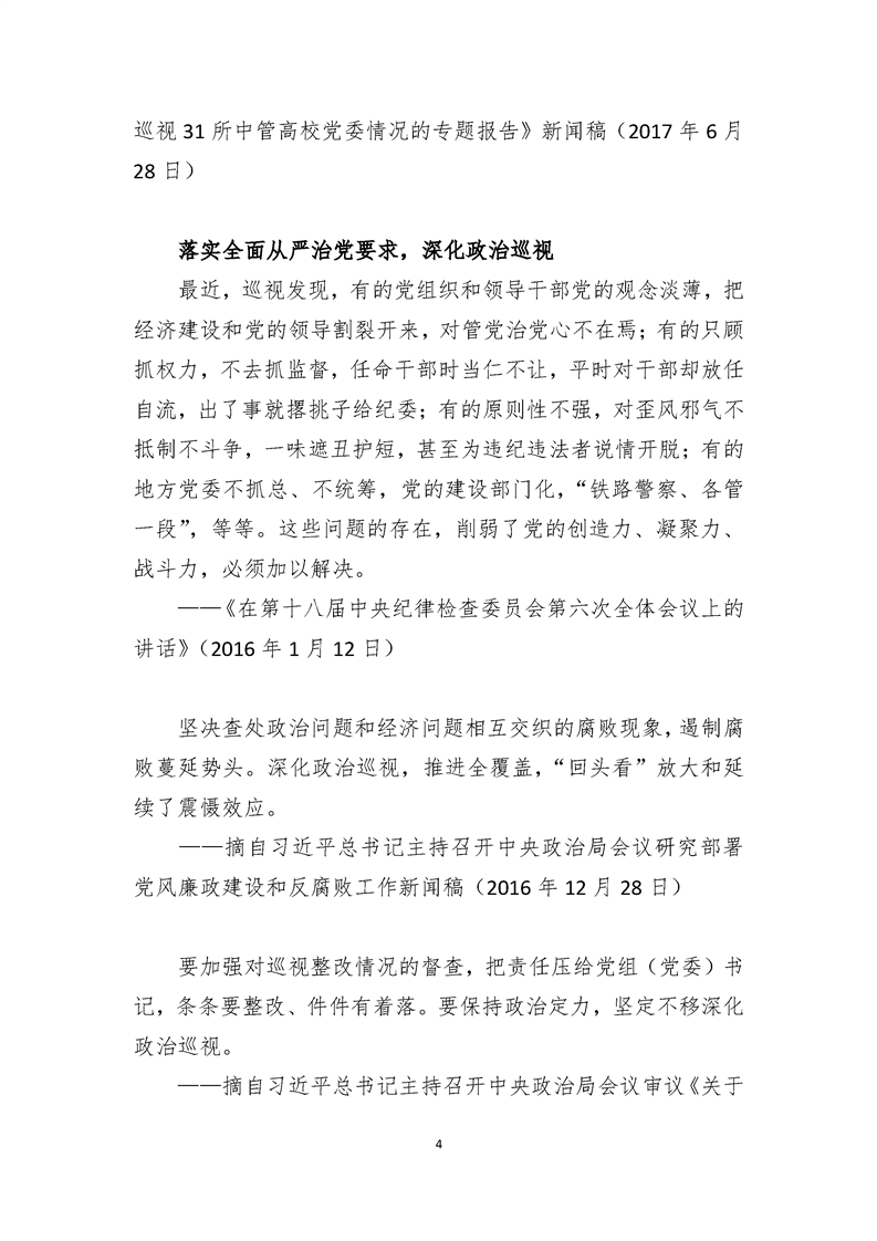 习近平总书记关于有助于巡视工作向纵深开展重要论述摘录