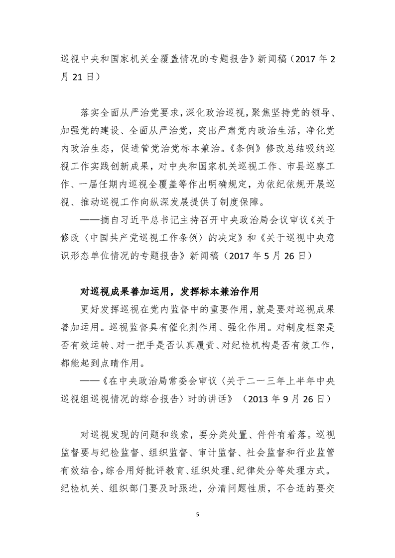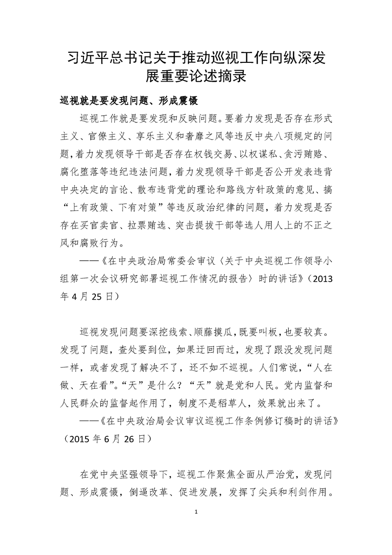 习近平总书记关于有助于巡视工作向纵深开展重要论述摘录