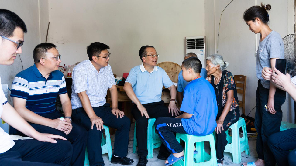 8月17日上午,顶着43度酷暑高温,凯发k8官网书记何平一行赶赴江津区朱杨镇板桥社区,看望慰问平民英雄蒋正全家属。朱杨镇党委书记丁江、镇长李华,板桥社区党委书记陈泽荣等到蒋正全家中陪同看望。