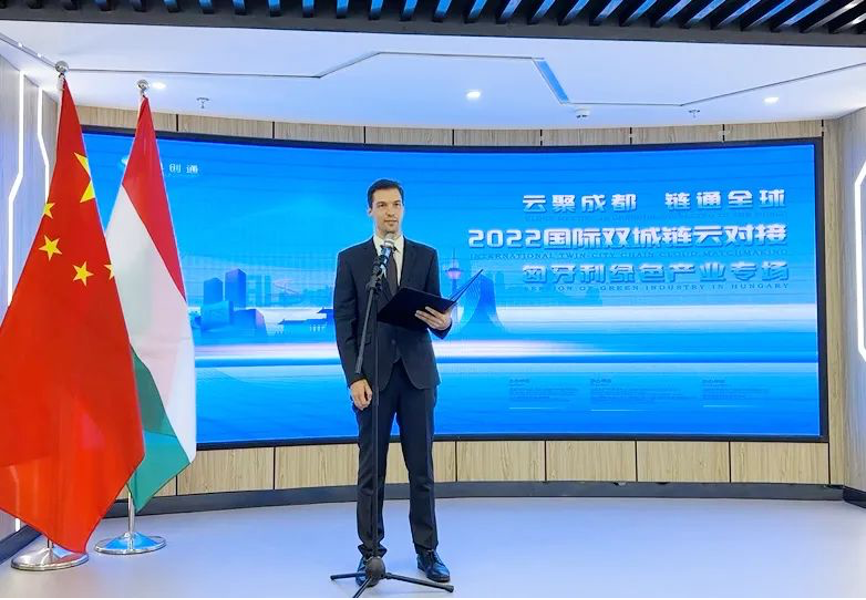 10月27日,由成都市科学技术局(成都市外国专家局)主办,院高创中心公司(中匈技术转移中心)与成都生产力促进中心(成都市国际科技研讨中心)共同承办,成都数字媒体产业化基地有限公司、重庆国际科技合作协会协办的“2022国际双城链云对接匈牙利绿色产业专场活动”成功举办。匈牙利驻重庆总领事馆总领事葛凯达(Gergely Kádár)、成都市科学技术局副局长陈旭出席活动并致辞,共计3.2万余人次在线观看了本次直播。